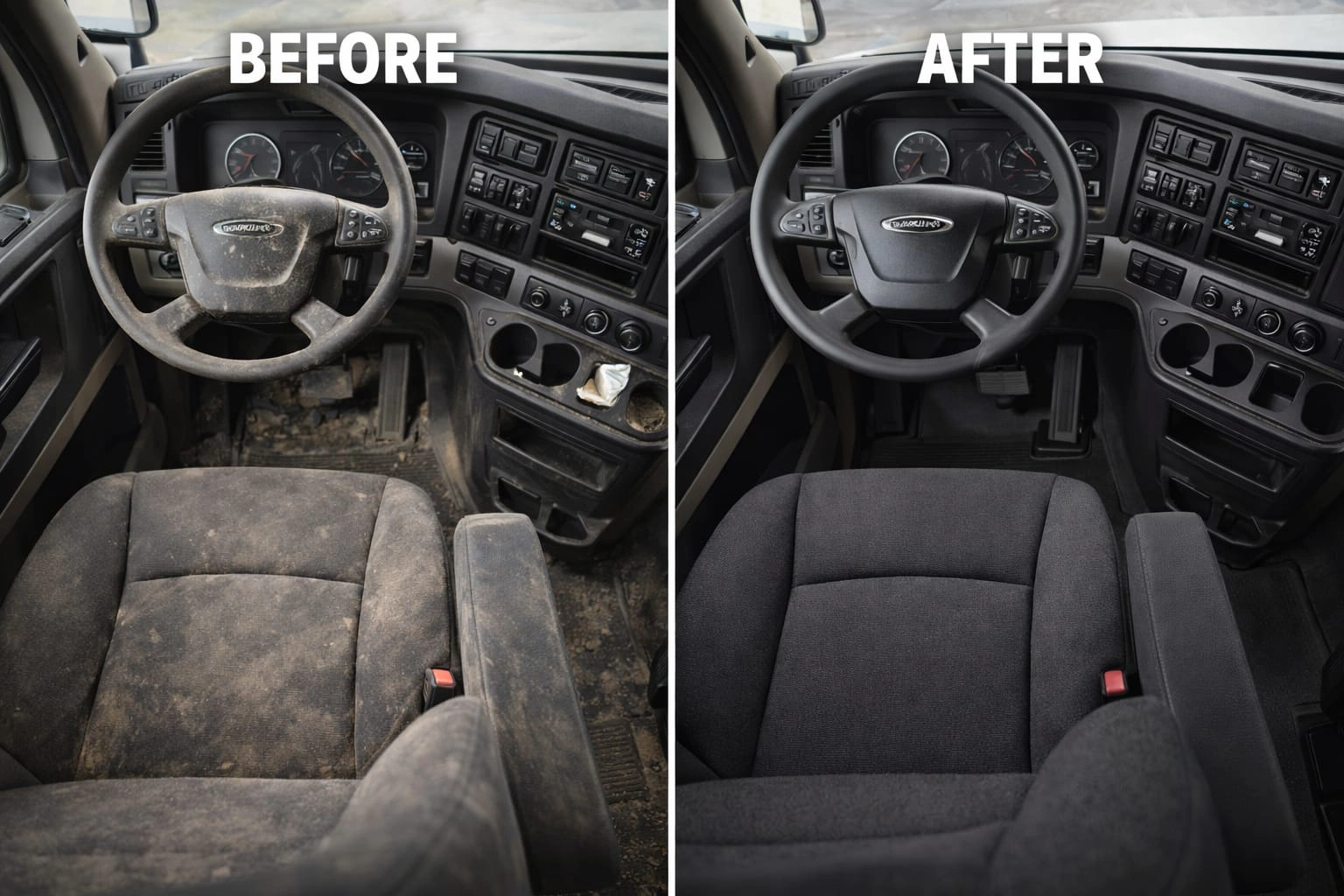 Long hours on the road lead to stains, spills, and embedded dirt inside truck cabins. Our advanced shampoo extraction process penetrates deep into seats and flooring, lifting stubborn buildup and restoring a fresh, clean interior. We focus on powerful cleaning without damaging materials, delivering professional results built for heavy-duty use.